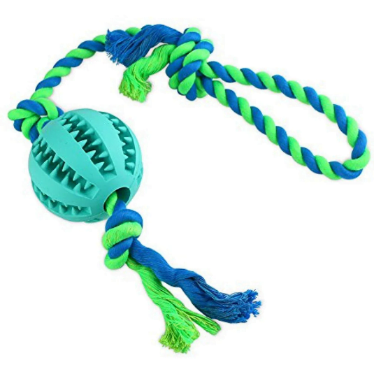dog treat ball dog chew toy cotton rope ball, interactive iq non-toxic rubber treat tooth cleaning toy for dogs puppy cat training playing chewing small